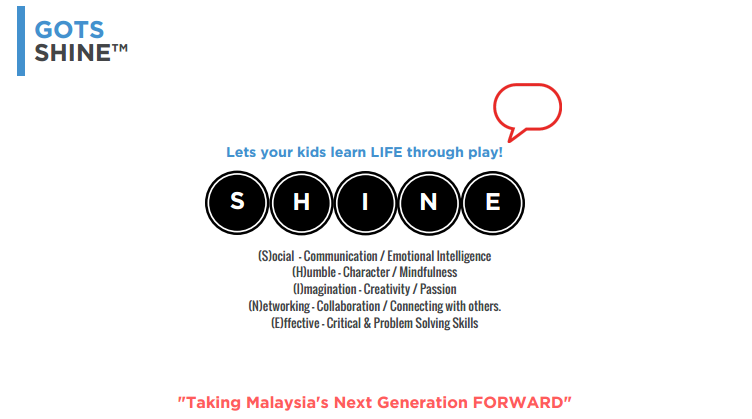 Designed by training & coaching experts who come from industry, this program is focused on competencies, not just theories. S.H.I.N.E. is a framework developed to scale according to the audience. Flexible in terms of how lesson plans may be delivered to children between 5-12 years old. One of the crucial elements of S.H.I.N.E. is, less lecturing, more doing. Every S.H.I.N.E. class is an experience, with a singular focus and underlying truth about life to be learnt through play by the kids.